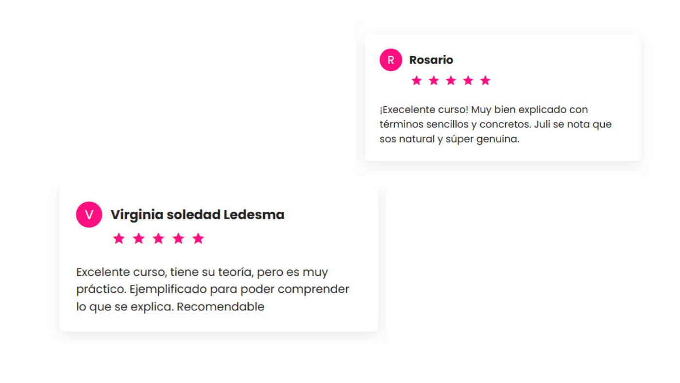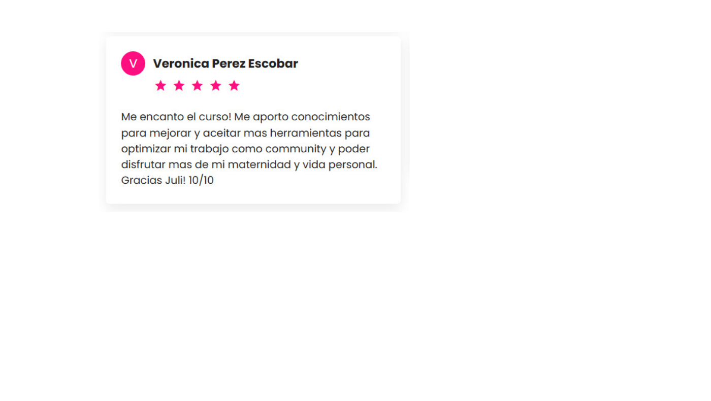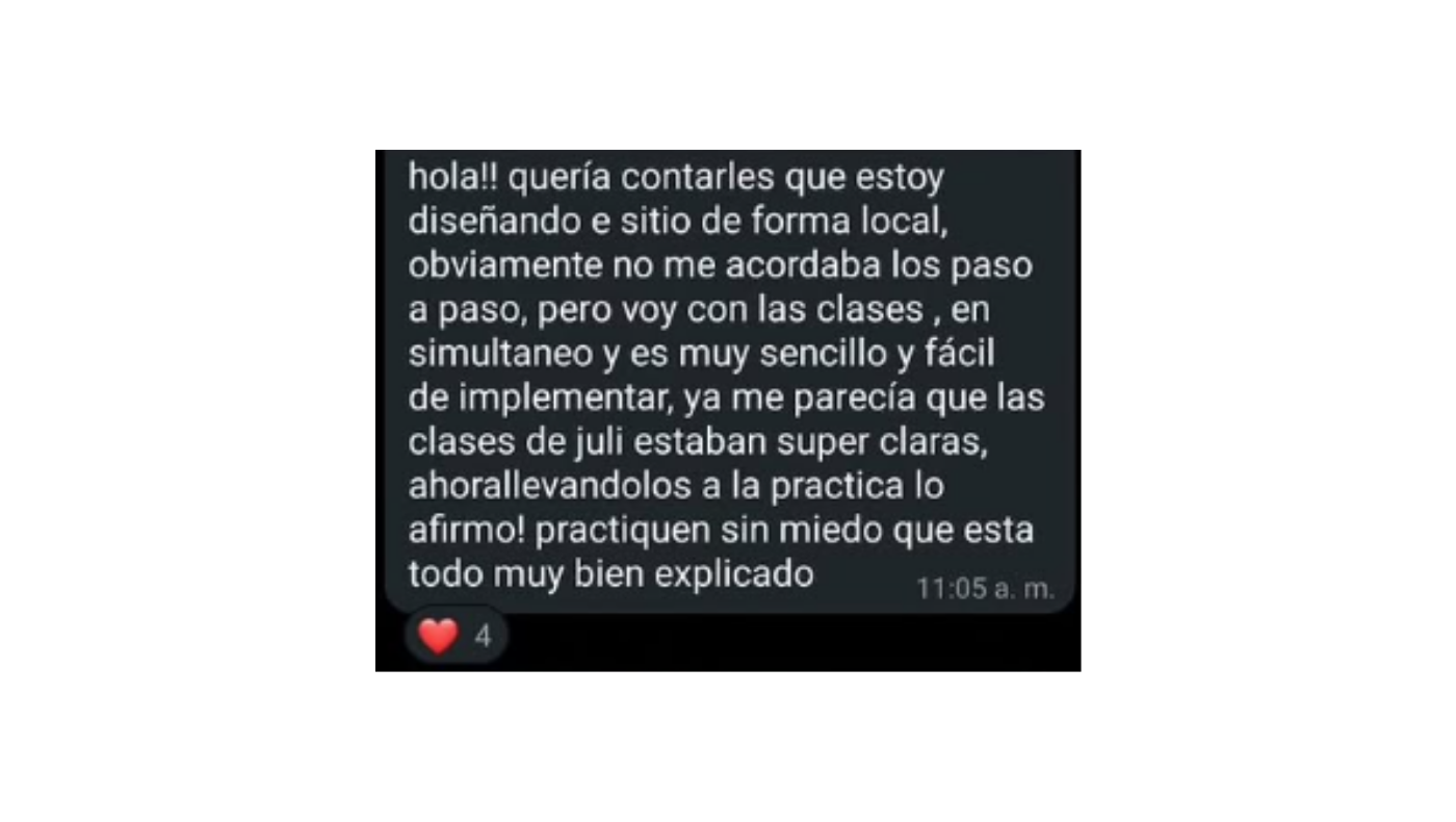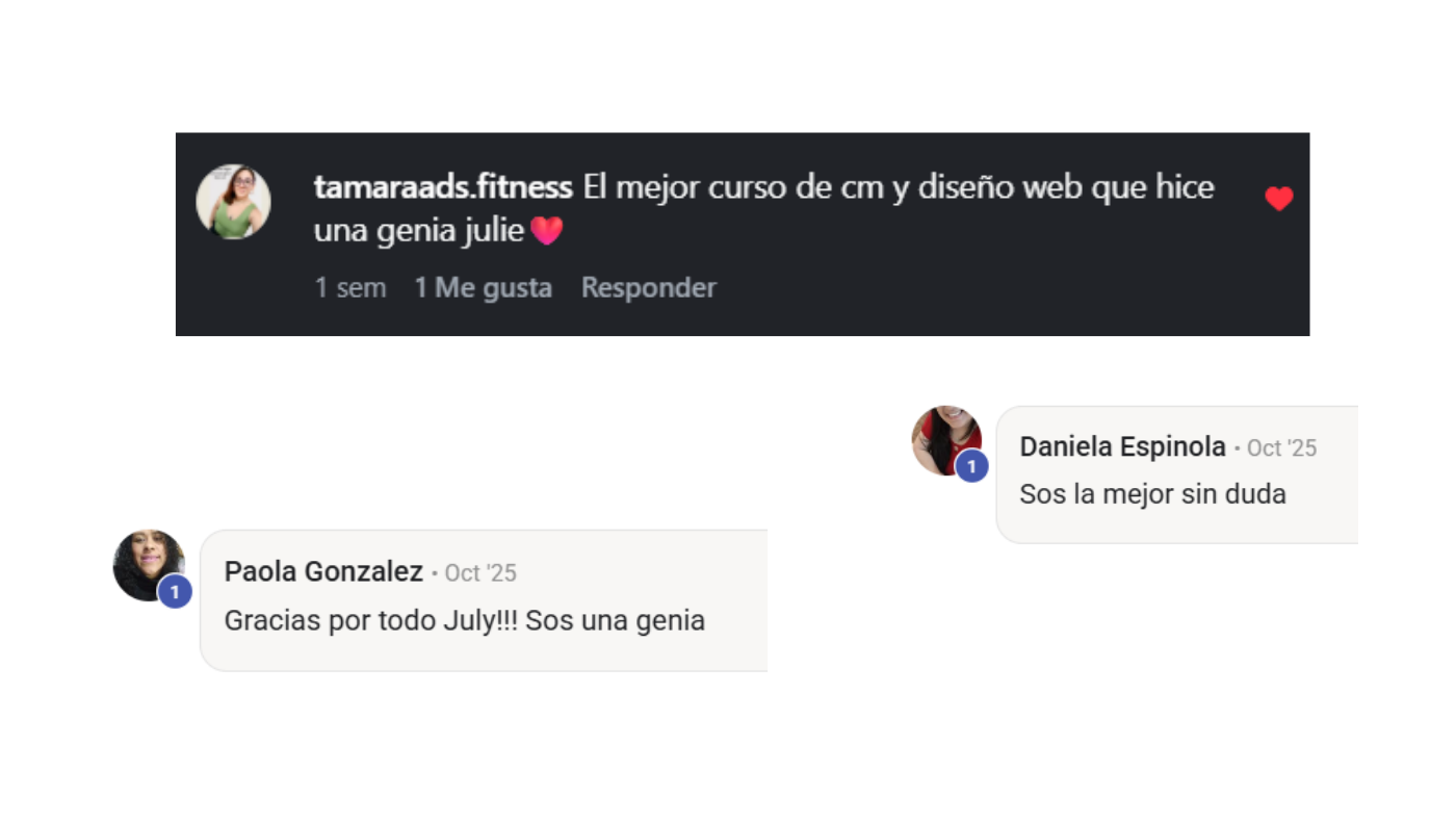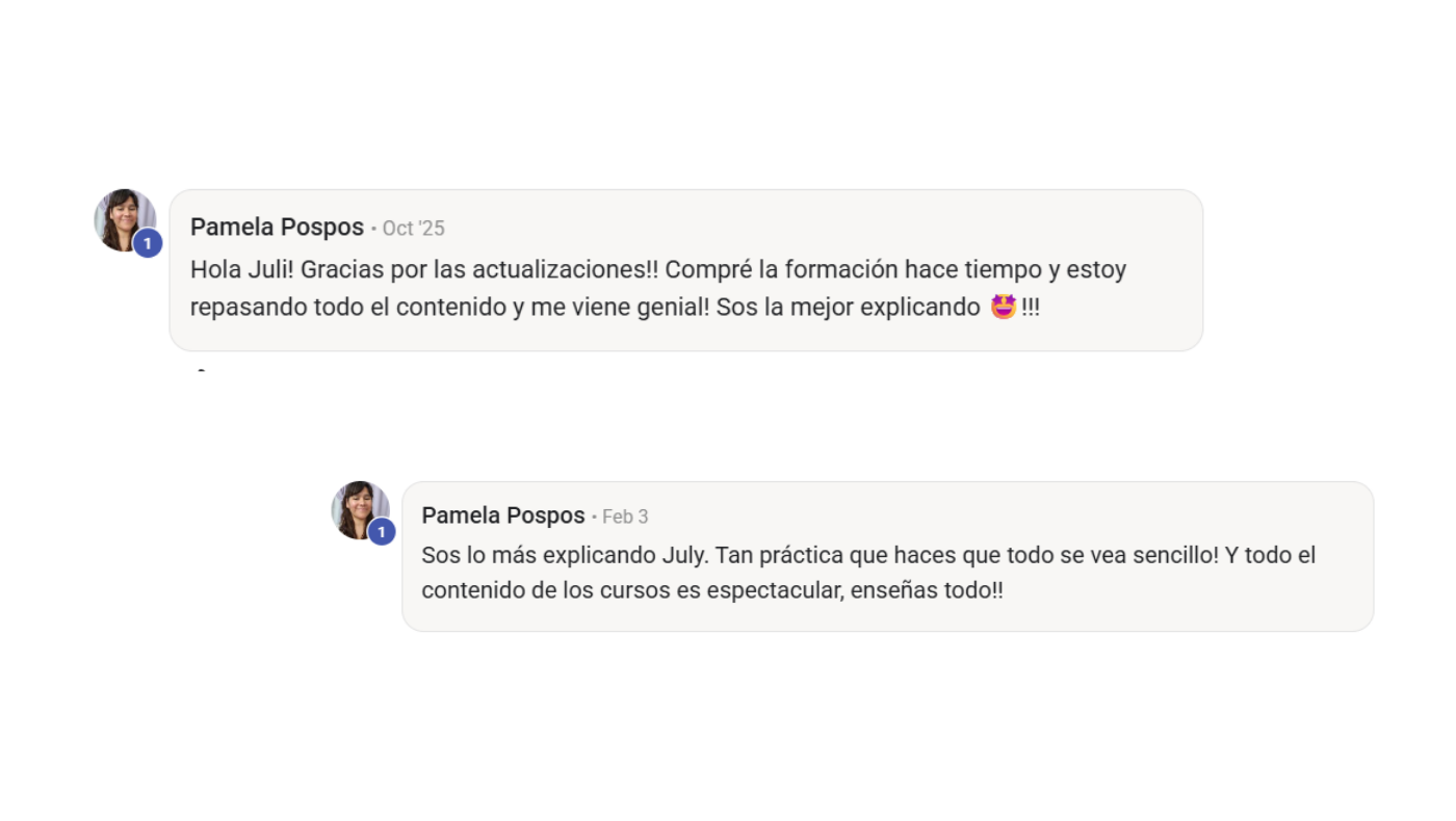 No es un curso grabado donde te dejan sola. Vas a tener clases en vivo, espacio para preguntas y seguimiento real. Y la comunidad también acompaña mucho el proceso.